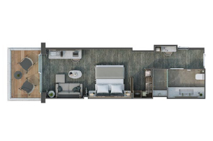 Silver Nova’s Junior Grand Suite is a comfortably sized home away from home. Spaciously proportioned at 54-58 m2 or 581-624 sq. ft, including 6 m2 or 64 sq. ft of balcony, the Junior Grand builds on the success of the Grand Suite. It has inherited the best features of the Grand Suite by being positioned in the top bow position, offering spectacular views of the destination. The interior layout features a spacious living and dining area, as well as a secluded bedroom. The large bathroom features a double vanity, whirlpool and walk-in shower.
