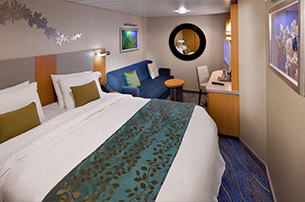 Two twin beds (can convert into queen-size), private balcony, sitting area (some with sofa bed), mini bar, private bathroom, bathtub, vanity area, hair-dryer, closed-circuit TV and phone. Also referred to as Superior Ocean View Suite. (293 sq. ft., balcony 66 sq. ft.)