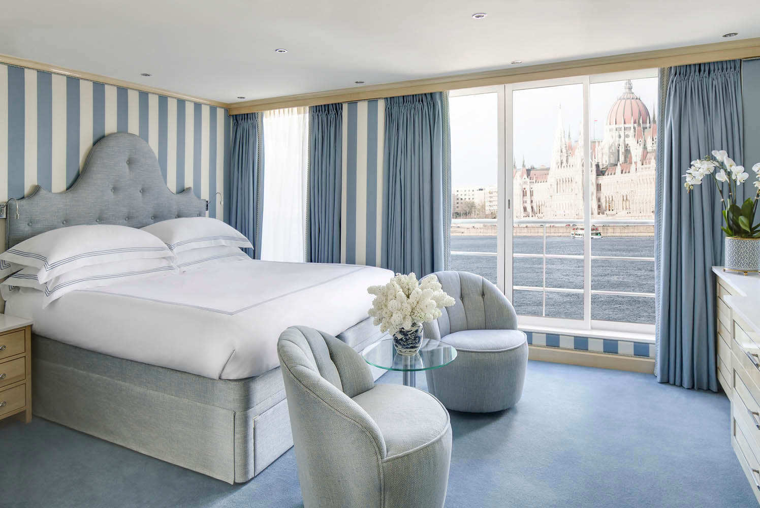 We are excited to introduce our newest Super Ship — S.S. Beatrice. The S.S. Beatrice boasts yacht-style light wood with blue and white finishes throughout, a renovated lobby featuring elegant mirrors, marble floors, a white Murano chandelier with blue shades, and a grand staircase made of nickel and black iron – a signature design element of Uniworld’s Super Ships. The ship’s redesigned lounge features sofas and chairs with hand-made upholstery, a parquet floor and upholstered ceiling panels, solar shades, and new USB ports allowing guests to charge anywhere they are sitting. The artwork throughout the ship includes pieces from Pablo Picasso, Alexander Calder and Pino Signoretto.